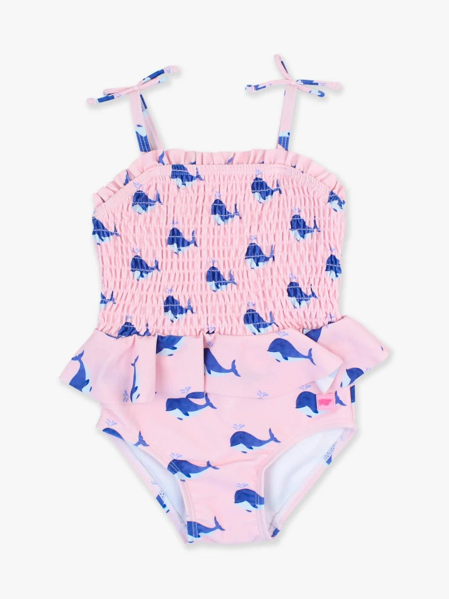 Pink Whale friends peplum smocked bodice One Pc.