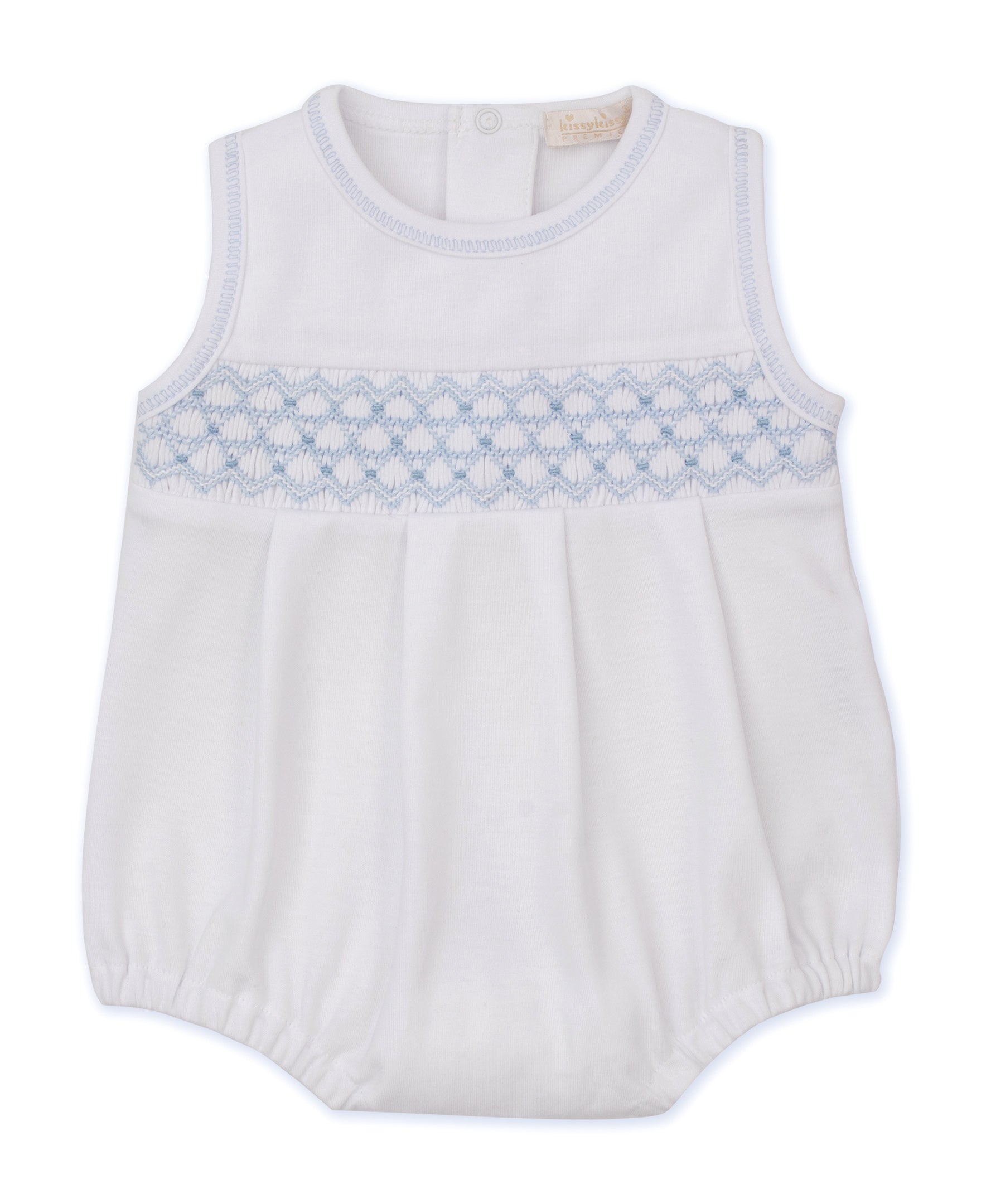 White with Blue hand smocked bubble